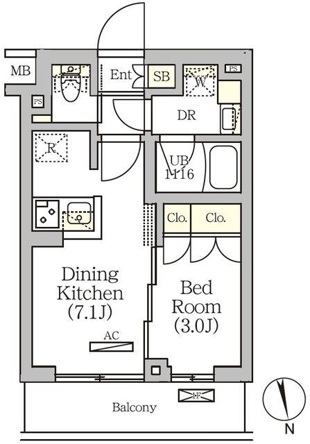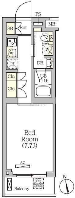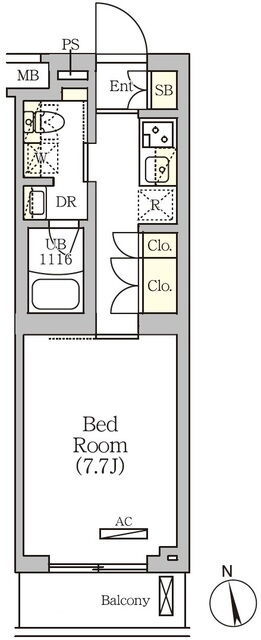 | 間取 | 1R ~ 1DK | 面積 | 25.28㎡ ~ 26.5㎡ |