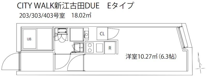 | 間取 | 1R ~ 1K | 面積 | 18.02㎡ ~ 23.07㎡ |
